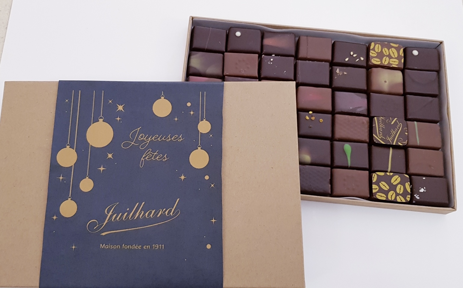 Assortiment de notre gamme de chocolats fondants, croquants et totalement fait maison. Variété composée de ganaches, pralinés et pâtes d’amande enrobés de chocolat noir et lait (au choix).