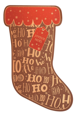 Tablette « Chaussette » en chocolat noir ou au lait sur le thème de Noël. Les décors peuvent varier. 100g.